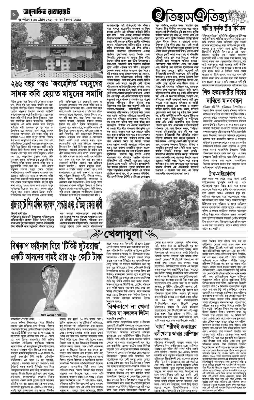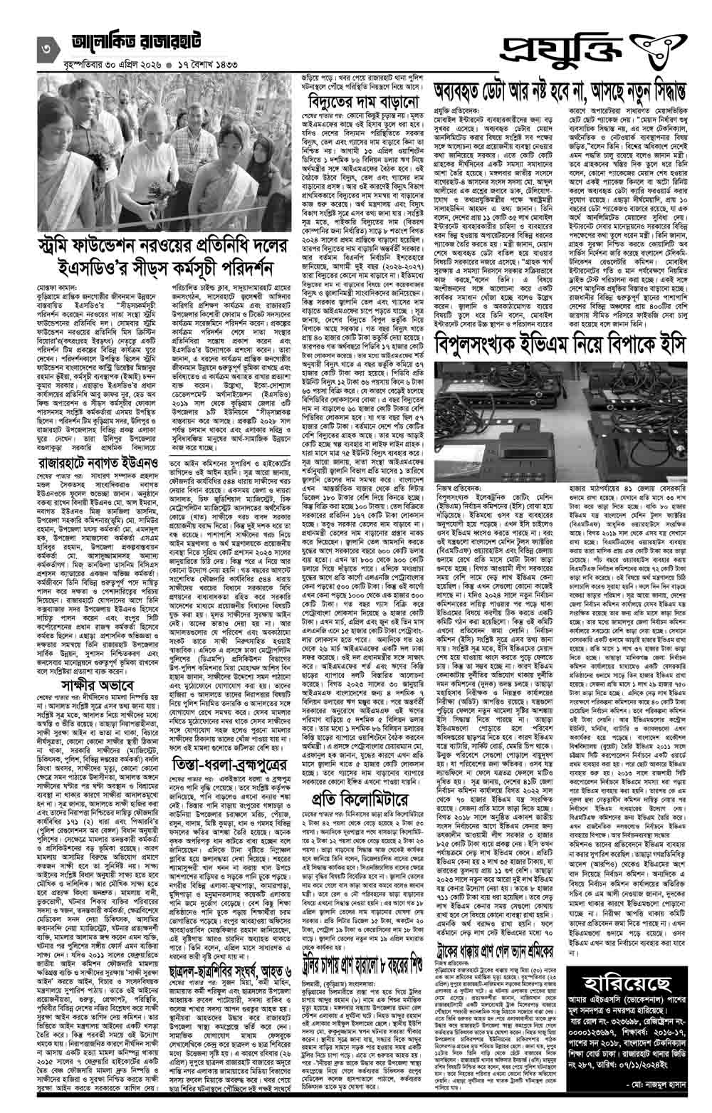 আলোকিত রাজারহাট ই-পেপার প্রকাশকাল ৩০/০৪/২৬ইং
