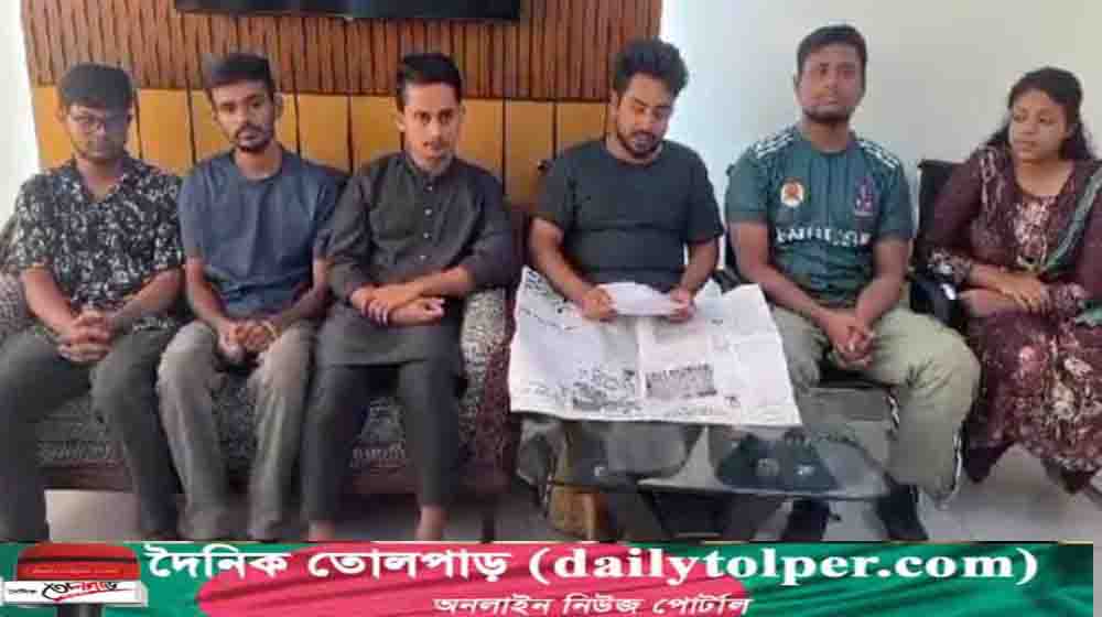 শুক্রবার ২ আগস্ট সকাল ১১টা ২০ মিনিটে সাংবাদিকদের পাঠানো ৬ সমন্বয়কের স্বাক্ষরিত বিবৃতিতে এ কথা জানানো হয়। বিবৃতিটি পাঠান সমন্বয়ক আবু বাকের মজুমদার। এতে আরও স্বাক্ষর করেন নাহিদ ইসলাম, সারজিস আলম, হাসনাত আব্দুল্লাহ, আসিফ মাহমুদ, নুসরাত তাবাসসুম।-খবর তোলপাড়।