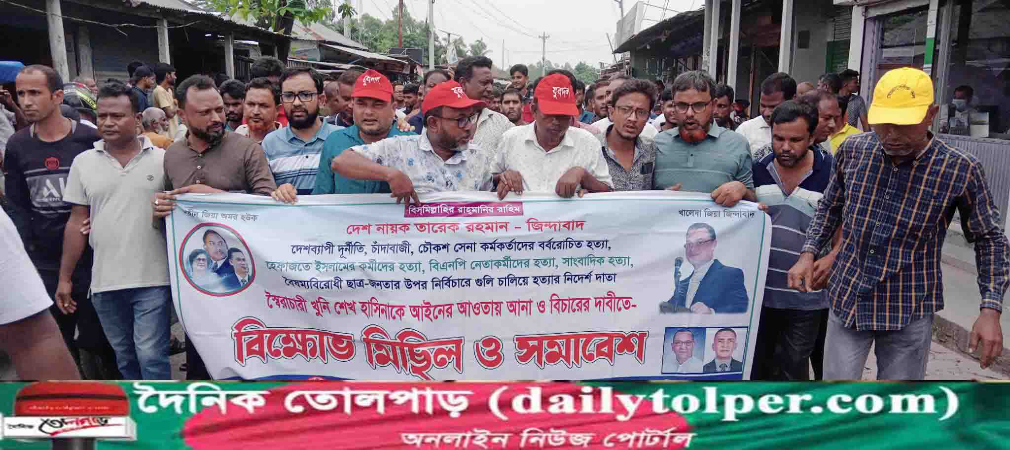 এসময় এক প্রতিবাদ সভায় বক্তব্য রাখেন উপজেলা বিএনপি’র সাধারণ সম্পাদক শহীদুল ইসলাম, সহ-সভাপতি শফিকুল ইসলাম, সাংগঠনিক সম্পাদক শহিদুল ইসলাম ব্যাপারী, উপজেলা যুবদলের আহবায়ক আব্দুল কুদ্দুস, নয়ন আলী, আবুল কালাম আজাদ, স্বেচ্ছাসেবক দলের আহবায়ক আনিছুর রহমান লিটন, জিয়া সাইবার ফোর্স এর সভাপতি আসাদুর রহমান শিমু, উপজেলা ছাত্রদলের আহবায়ক রুবেল পাটোয়ারী,কলেজ শাখা ছাত্রদলের আহবায়কেএকরামুল হক প্রমূখ।