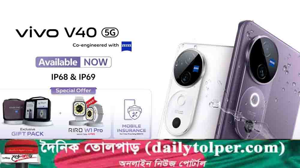 রবিবার (৬ অক্টোবর) থেকে ভিভো যেকোনো শো-রুম বা ইস্টোর থেকে সংগ্রহ করা যাবে নতুন স্মার্টফোন ভিভো ভি৪০ ফাইভজি। স্মার্টফোনটিতে রয়েছে জাইসের ৫০ মেগাপিক্সেল ট্রিপল ক্যামেরা লেন্স, জাইস সিনেম্যাটিক পোর্ট্রেট ভিডিও, জাইস স্টাইল বোকেহ, জাইস মাল্টিফোকাল পোর্ট্রেট, ১২০ হার্জ রিফ্রেশ রেটের থ্রিডি কার্ভড ডিসপ্লে, ৫৫০০ মিলিঅ্যাম্পিয়ারের ব্লুভোল্ট ব্যাটারি, ৮০ ওয়াটের ফ্লাশ চার্জার এবং আইপি৬৮ এবং আইপি৬৯ ওয়াটার ও ডাস্ট রেজিস্টেন্স প্রযুক্তি।-খবর তোলপাড়।