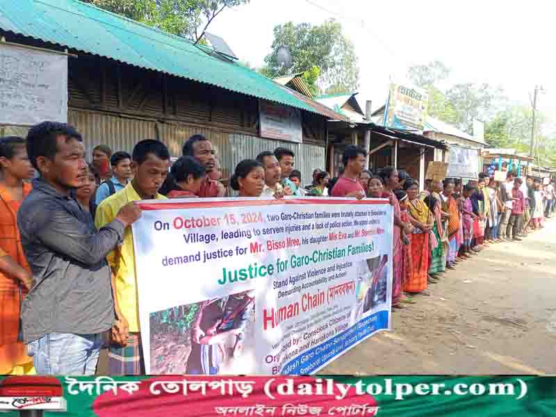 শেরপুরের শ্রীবরদীতে আদিবাসীদের উপর হামলা ও মারধরের প্রতিবাদে মানববন্ধন অনুষ্ঠিত হয়েছে।