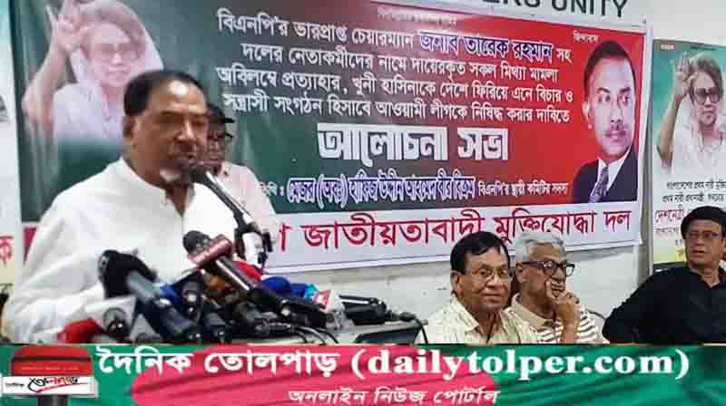 সোমবার (২১ অক্টোবর) ঢাকা রিপোর্টার্স ইউনিটিতে এক আলোচনা সভায় প্রধান অতিথির বক্তব্যে তিনি এসব কথা বলেন। বিএনপির ভারপ্রাপ্ত চেয়ারম্যান তারেক রহমানসহ দলের নেতাকর্মীদের নামে দায়েরকৃত সকল মিথ্যা মামলা অবিলম্বে প্রত্যাহার, খুনী হাসিনাকে দেশে ফিরিয়ে এনে বিচার এবং সন্ত্রাসী সংগঠন হিসেবে আওয়ামী লীগকে নিষিদ্ধ করার দাবিতে এ আলোচনা সভায় আয়োজন করে বাংলাদেশ জাতীয়তাবাদী মুক্তিযোদ্ধা দল।