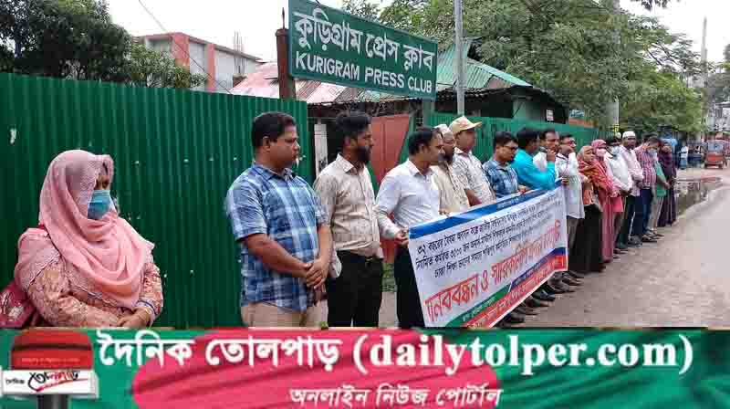 ৩২ বছরের বৈষম্য অবসান কল্পে জাতীয় বিশ^বিদ্যালয় অধিভুক্ত বেসরকারি কলেজ সমূহের অনার্স-মাস্টার্স শিক্ষকদের এমপিওভুক্তির দাবিতে ও শিক্ষকদের উপর পুলিশের অতর্কিত হামলার প্রতিবাদে বৃহষ্পতিবার সকাল ১১টায় কুড়িগ্রাম প্রেসক্লাবের সামনে ঘন্টা ব্যাপি মানববন্ধন ও সমাবেশ অনুষ্ঠিত হয়।