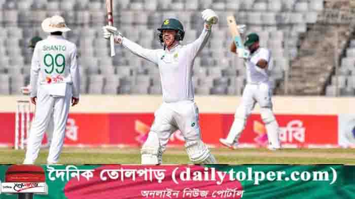 এরপর প্রোটিয়াদের দলীয় ৭১ রানে আরেক ওপেনার টনিকেও সাজঘরের পথ দেখান তাইজুল। টাইগার স্পিনারের বলে হাসান মাহমুদের মুঠোবন্দী হয়ে আউট হওয়ার আগে ৫২ বলে ৪১ রান করেন টনি। এরপর সফরকারীদের তৃতীয় উইকেটের পতন হয় দলীয় ৯৭ রানে। ১৩ বলে ১২ রান করে তাইজুলের বলেই লিটন দাসের গ্লাভসবন্দী হয়ে আউট হন ডেভিড বেনিংহাম। -খবর তোলপাড়।