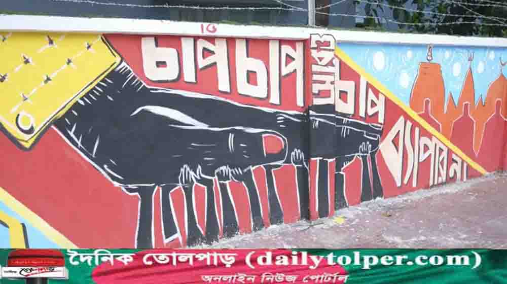 ঢাকা শহরের দেয়াল জুড়ে প্রতিবাদের ভাষা হিসেবে আঁকা এসব গ্রাফিতি