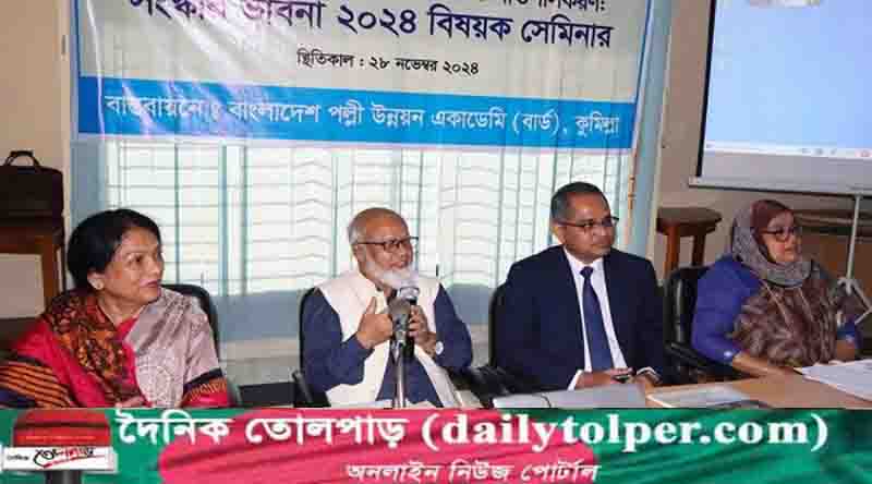 বৃহস্পতিবার (২৮ নভেম্বর) দুপুর আড়াইটার ২টার দিকে কুমিল্লার কোটবাড়ি এলাকায় অবস্থিত বাংলাদেশ পল্লী উন্নয়ন একাডেমিতে (বার্ড) স্থানীয় সরকার প্রতিষ্ঠার শক্তিশালী ও গতিশীলকরণ: সংস্কার ভাবনা ২০২৪ বিষয়ক সেমিনারে প্রধান অতিথির বক্তব্যে এ কথা বলেন তিনি।