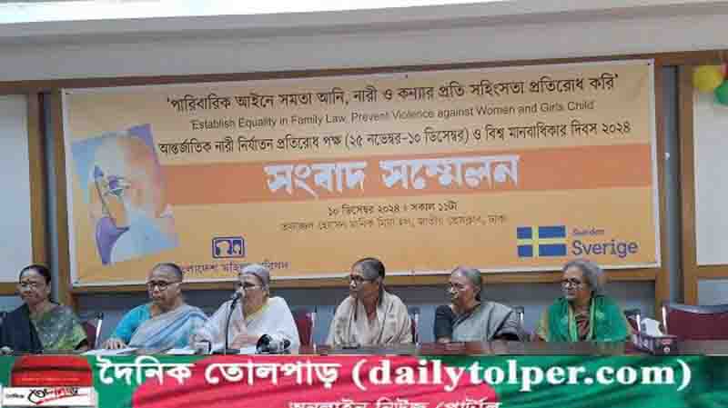 'পারিবারিক আইনে সমতা আনি, নারীর প্রতি সহিংসতা প্রতিরোধ করি' এই স্লোগানকে সামনে রেখে আন্তর্জাতিক নারী নির্যাতন প্রতিরোধ পক্ষ (২৫ নভেম্বর-১০ ডিসেম্বর) ও বিশ্ব মানবাধিকার দিবস ২০২৪ উপলক্ষে এই সংবাদ সম্মেলনের আয়োজন করা হয়।
