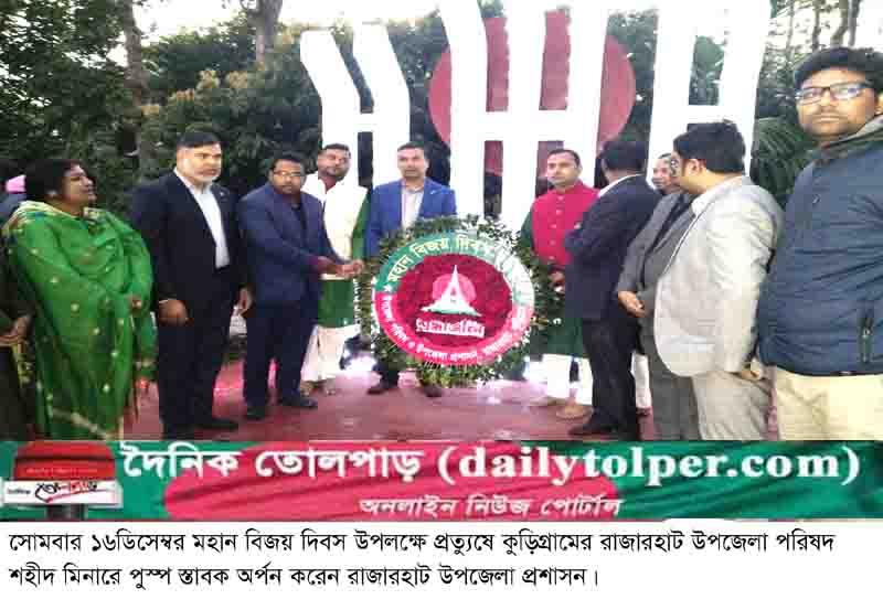 কুড়িগ্রামের রাজারহাট উপজেলায় যথাযোগ্য মর্যাদায় ৫৩তম মহান বিজয় দিবস-২০২৪ পালিত হয়েছে। ১৬ ডিসেম্বর মহান বিজয় দিবস উপলক্ষ্যে মুল অনষ্ঠানটি হয়েছে উপজেলা পরিষদ চত্তরে। সূর্যোদয়ের সাথে সাথে ৩১ বার তোপধ্ধনির মধ্যদিয়ে দিনের কার্যক্রম শুরু হয়।