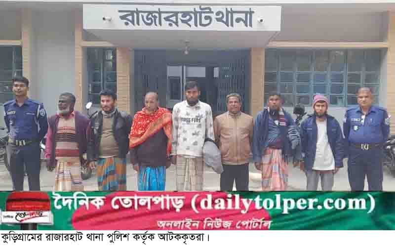 কুড়িগ্রামের রাজারহাট থানা পুলিশ শুক্রবার(২০ডিসেম্বর) রাতে বিভিন্ন মামলায় অভিযুক্ত ৮জনকে গ্রেফতার করে কুড়িগ্রাাম জেল হাজতে প্রেরণ করেছে।
