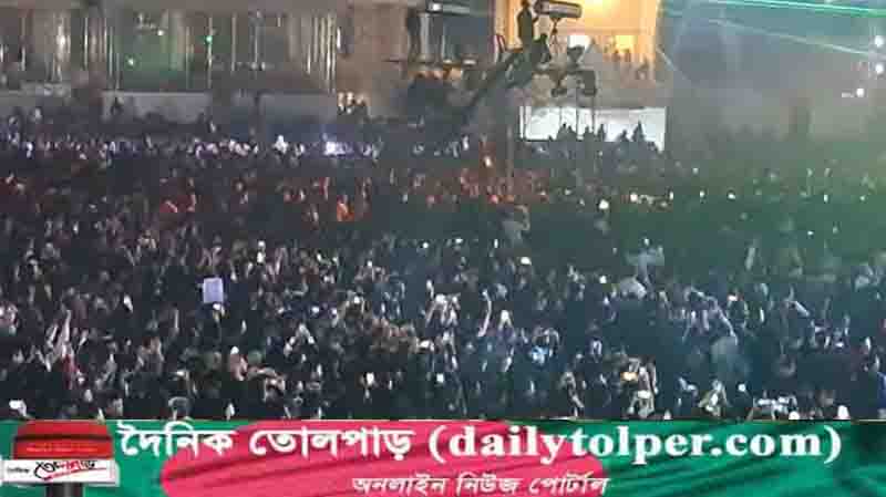 সন্ধ্যার পর মঞ্চে ওঠেন জাতীয় নাগরিক কমিটির মুখ্য সংগঠক ও জুলাই শহীদ স্মৃতি ফাউন্ডেশনের সাধারণ সম্পাদক সারজিস আলম। এ সময় তিনি শেখ হাসিনার ফাঁসি চেয়ে স্লোগান দেন। তার সঙ্গে গলা মেলান কনসার্টে উপস্থিত হাজারো মানুষ।