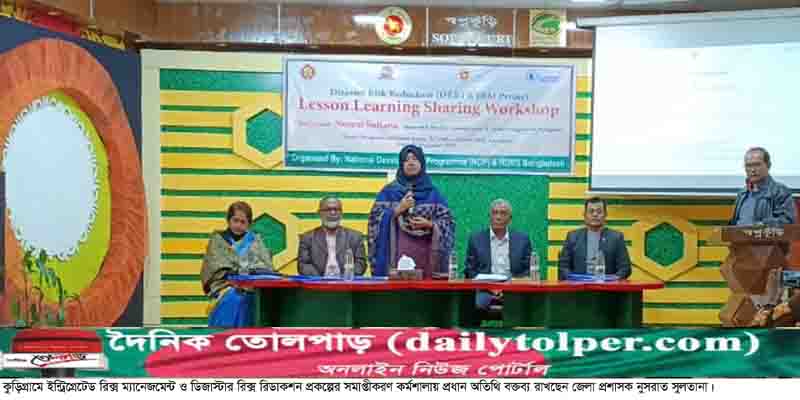 কুড়িগ্রামে ইন্ট্রিগ্রেটেড রিক্স ম্যানেজমেন্ট ও ডিজাস্টার রিক্স রিডাকশন প্রকল্পের সমাপ্তীকরণ কর্মশালা অনুষ্ঠিত হয়েছে। রবিবার (২৯ ডিসেম্বর) দুপুরে কুড়িগ্রাম জেলা প্রশাসক স্বপ্নকুঁড়ি রিসোর্স সেন্টারে অনুষ্ঠিত শেয়ারিং কর্মশালায় প্রধান অতিথি হিসেবে উপস্থিত ছিলেন জেলা প্রশাসক নুসরাত সুলতানা।