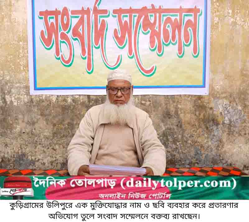 মুক্তিযুদ্ধের গৌরবময় ইতিহাস এবং স্বাধীনতার জন্য তাদের অসীম অবদানের প্রতি সম্মান জানানো হলেও কিছু অসাদু ব্যক্তি একজন বীর মুক্তিযোদ্ধার নাম ও ছবি ব্যবহার করে প্রতারণা করে আসছেন বলে অভিযোগ পাওয়া গেছে। এমন একটি অভিযোগ তুলে সংবাদ সম্মেলন করেছেন বীর মুক্তিযোদ্ধা সোলায়মান আলী। তিনি কুড়িগ্রামের উলিপুর উপজেলার তবকপুর বামনাছড়া এলাকার বাসিন্দা। মঙ্গলবার (৩১ডিসেম্বর) উলিপুর পৌরশহরের পুরাতন বাস স্ট্যান্ড এলাকায় অনুষ্ঠিত সংবাদ সম্মেলনে তিনি দাবি করেন, দীর্ঘদিন ধরে তার নাম ও ছবি ব্যবহার করে প্রতারণা করে আসছেন।