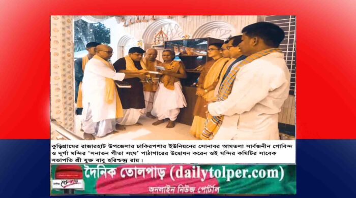 প্রহলাদ মন্ডল সৈকত: কুড়িগ্রামের রাজারহাট উপজেলার চাকিরপশার ইউনিয়নেরসোনাবর আমতলা সার্বজনীন গোবিন্দ ও দূর্গা মন্দির ‘সনাতন গীতা সংঘ’ পাঠাগারের উদ্বোধন করা হয়েছে। শারদীয় দূর্গা পূজার মহাষ্টমী তীথিতে এই পাঠাগারটি উদ্বোধন করা