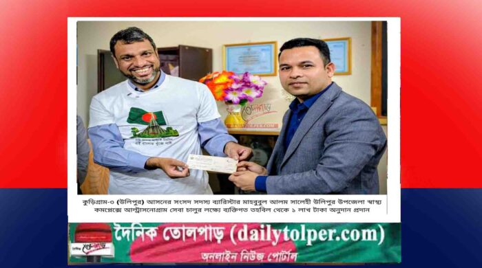 আব্দুল মালেক : কুড়িগ্রাম-৩ (উলিপুর) আসনের সংসদ সদস্য ব্যারিস্টার মাহবুবুল আলম সালেহী উলিপুর উপজেলা স্বাস্থ্য কমপ্লেক্সে আল্ট্রাসনোগ্রাম সেবা চালুর লক্ষ্যে ব্যক্তিগত তহবিল থেকে ১ লাখ টাকা অনুদান প্রদান করেছেন। মঙ্গলবার
