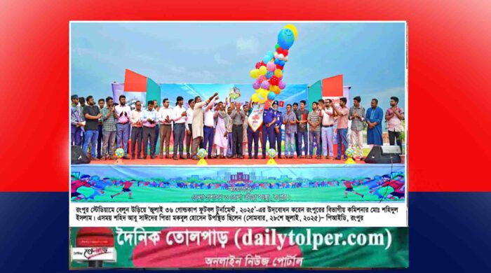 পিআইডি, রংপুর: রংপুরে জুলাই ৩৬ গোল্ডকাপ ফুটবল টুর্নামেন্ট, ২০২৫-এর উদ্বোধন করা হয়েছে। সোমবার (২৮শে জুলাই) বিকালে রংপুর জেলা স্টেডিয়ামে প্রধান অতিথি হিসাবে উপস্থিত থেকে বেলুন উড়িয়ে টুর্নামেন্টের উদ্বোধন করেন রংপুরের আরো পড়ুন