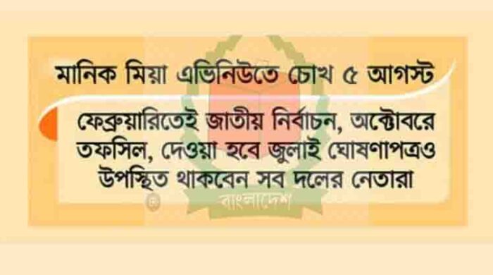মঙ্গলবার (৫ আগস্ট) বিকেল ৫টায় ছাত্র-জনতার অভ্যুত্থানের সব পক্ষের উপস্থিতিতে জুলাই ঘোষণাপত্র জাতির সামনে উপস্থাপন করা হবে বলে জানিয়েছেন প্রধান উপদেষ্টার প্রেস সচিব শফিকুল আলম। শনিবার (২ আগস্ট) দুপুরে নিজের