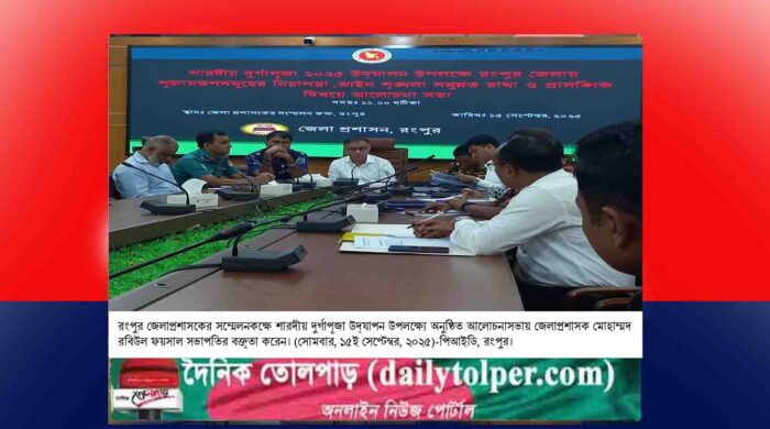 পিআইডি, রংপুর : রংপুরে শারদীয় দুর্গাপূজা উদ্যাপন উপলক্ষ্যে পূজামণ্ডপসমূহের নিরাপত্তা, আইন-শৃঙ্খলা সমুন্নত রাখা ও প্রাসঙ্গিক বিষয়ে এক আলোচনাসভা অনুষ্ঠিত হয়েছে। সোমবার (১৫ই সেপ্টেম্বর) রংপুর জেলাপ্রশাসকের সম্মেলনকক্ষে অনুষ্ঠিত সভায় সভাপতিত্ব করেন