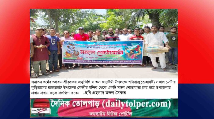 প্রহলাদ মন্ডল সৈকত: সনাতন ধর্মের আরাধ্য শ্রীবিষ্ণুর পূর্ণ অবতার ভগবান শ্রীকৃষ্ণের জন্মতিথি ও শুভ জন্মাষ্টমী উপলক্ষে সারাদেশের ন্যায় কুড়িগ্রামের রাজারহাটে ধর্মীয় ভাবগাম্ভীর্য মধ্য দিয়ে মঙ্গল শোভাযাত্রা, আলোচনা সভা ও পূজা-অর্চনা