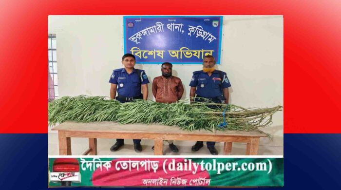 আঞ্চলিক সংবাদদাতা, কুড়িগ্রাম: কুড়িগ্রামের ভূরুঙ্গামারীতে ১০ ফুট উচ্চতার একটি গাঁজার গাছসহ নুরুল ইসলাম (৫৮) নামে এক ব্যক্তিকে আটক করেছে পুলিশ। সোমবার (২৬ মে) বিকেল পাঁচটার দিকে উপজেলার তিলাই ইউনিয়নের পশ্চিম