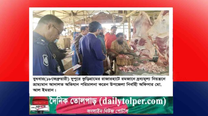 প্রহলাদ মন্ডল সৈকত: কুড়িগ্রামের রাজারহাটে পবিত্র রমজানে নিত্যপ্রয়োজনীয় পণ্যের মূল্য স্থিতিশীল ও সহনীয় রাখতে ভ্রাম্যমাণ আদালত পরিচালনা করেছেন উপজেলা নির্বাহী অফিসার মো. আল ইমরান। বুধবার (১৮ ফেব্রুয়ারি) দুপুরে পরিচালিত এ