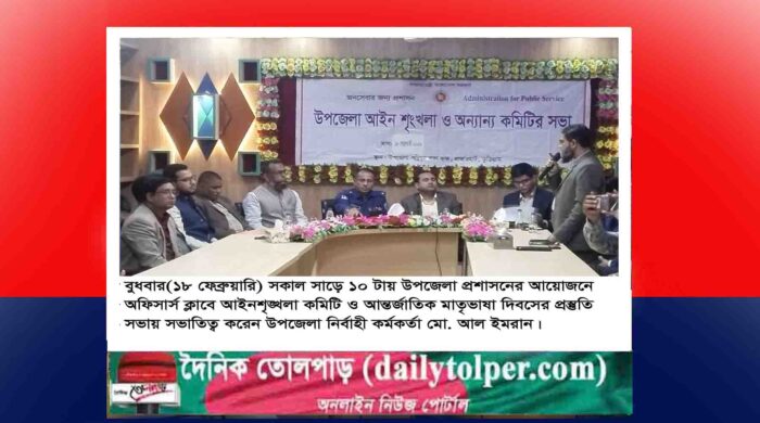 প্রহলাদ মন্ডল সৈকত: কুড়িগ্রামের রাজারহাটে ফেব্রুয়ারি মাসের আইনশৃঙ্খলা কমিটির সভা ও আন্তর্জাতিক মাতৃভাষা দিবসের প্রস্তুতি সভা অনুষ্ঠিত হয়েছে। বুধবার (১৮ ফেব্রুয়ারি) সকাল সাড়ে ১০ টায় উপজেলা প্রশাসনের আয়োজনে অফিসার্স ক্লাবে