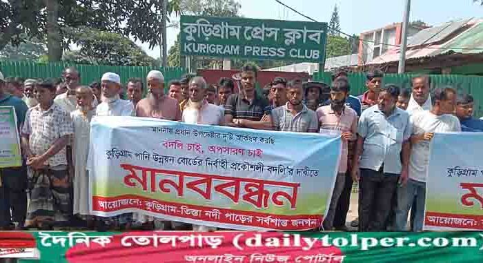 আতাউর রহমান বিপ্লব, কুড়িগ্রাম: তিস্তার ভাঙ্গনরোধে ব্যবস্থা না নেয়ায় কুড়িগ্রাম পানি উন্নয়ন বোর্ডের নির্বাহী প্রকৌশলীকে বদলীর দাবিতে মানববন্ধন করেছে তিস্তাপাড়ের মানুষ। সোমবার (১৪ অক্টোবর) দুপুরে দীর্ঘ পথ পাড়ি দিয়ে জেলা