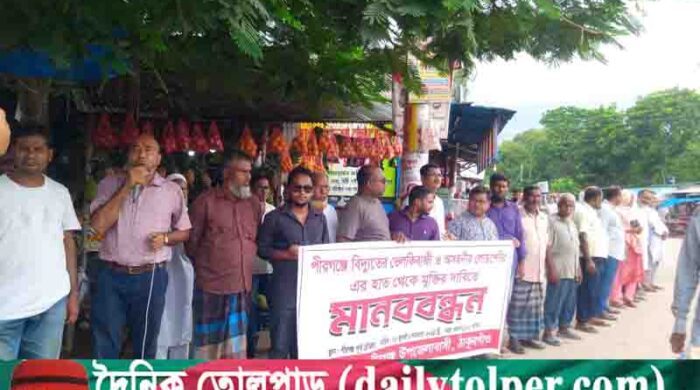 সংবাদদাতা, পীরগঞ্জ(ঠাকুরগাঁও): পীরগঞ্জ বিদ্যুতের ভেলকিবাজী ও অসহনীয় লোডশেডিং থেকে মুক্তির দাবীতে মানববন্ধন হয়েছে। সোমবার দুপুরে পৌর শহরের পূর্ব চৌরাস্তায় পীরগঞ্জ উপজেলা বাসী এর আয়োজন করেন। দীর্ঘদিন ধরে পীরগঞ্জ পৌর এলাকা