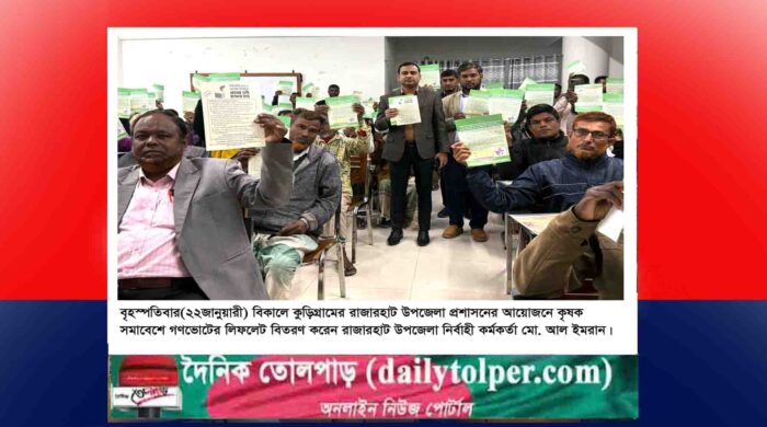 প্রহলাদ মন্ডল সৈকত: কুড়িগ্রামের রাজারহাটে গণভোটের গুরুত্ব ও প্রয়োজনীয়তা তুলে ধরতে কৃষকদের নিয়ে এক সচেতনতামূলক সমাবেশ অনুষ্ঠিত হয়েছে। বৃহস্পতিবার(২২জানুয়ারী) বিকালে উপজেলা প্রশাসনের আয়োজনে কৃষক সমাবেশে প্রধান অতিথি হিসেবে উপস্থিত ছিলেন আরো পড়ুন