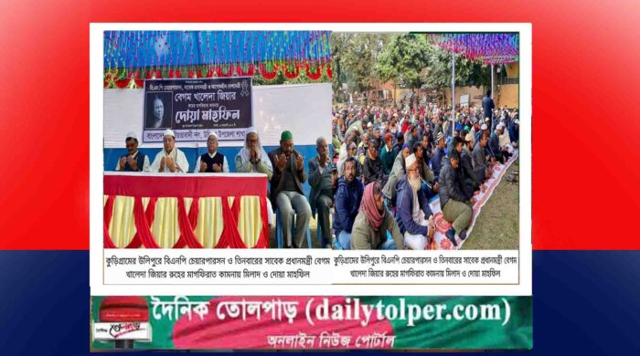আব্দুল মালেক : কুড়িগ্রামের উলিপুরে বিএনপি চেয়ারপারসন ও তিনবারের সাবেক প্রধানমন্ত্রী বেগম খালেদা জিয়ার রুহের মাগফিরাত কামনায় মিলাদ ও দোয়া মাহফিল অনুষ্ঠিত হয়েছে। শুক্রবার (২ জানুয়ারি) বিকেলে দলীয় কার্যালয়ে বাংলাদেশ