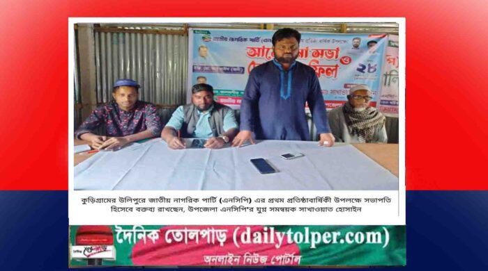 আব্দুল মালেক : কুড়িগ্রামের উলিপুরে জাতীয় নাগরিক পার্টি (এনসিপি) এর প্রথম প্রতিষ্ঠাবার্ষিকী উদযাপন হয়েছে। দিনটি উপলক্ষে শনিবার (২৮ ফেব্রুয়ারি) দুপুরে উপজেলা দলীয় কার্যালয়ে, উপজেলা এনসিপি’র আয়োজনে আলোচনা সভা ও দোয়া