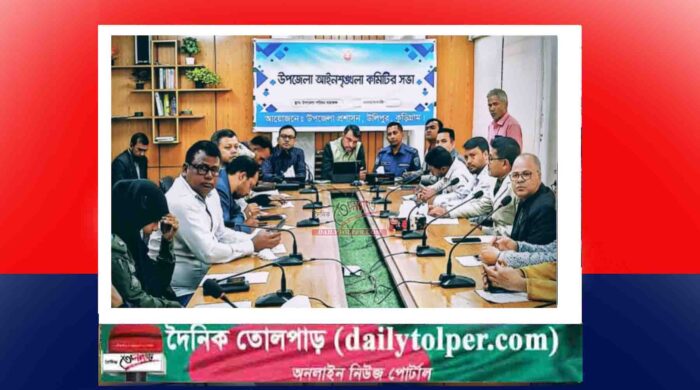 আব্দুল মালেক উলিপুর: কুড়িগ্রামের উলিপুর উপজেলা আইনশৃঙ্খলা কমিটির মাসিক সভা অনুষ্ঠিত হয়েছে। সোমবার (২৩ ফেব্রুয়ারী) দুপুরে উপজেলা প্রশাসনের আয়োজনে উপজেলা পরিষদ হলরুমে এ সভা হয়। উপজেলা নির্বাহী কর্মকর্তা মাহামুদুল হাসানের