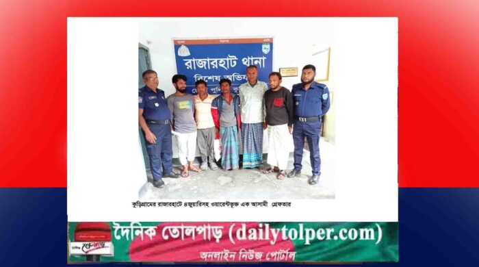 পিএম সৈকত: কুড়িগ্রামের রাজারহাট থানা পুলিশ ৪জুয়ারিসহ একওয়ারেন্টভূক্ত আসামীকে গ্রেফতার করে জেলহাজতে প্রেরণ করেছে। পুলিশ জানায়, উপজেলার রাজারহাট সদর ইউনিয়নের আদর্শ বাজার এলাকায় রোববার (২৯মার্চ) রাত ১০টার দিকে গোপন সংবাদের